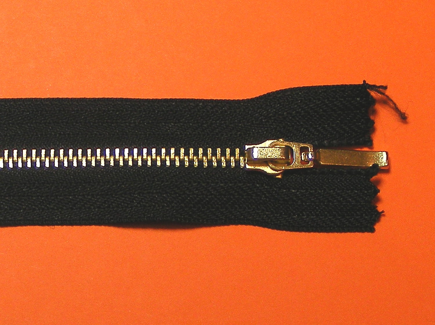 Zamek metalowy dł. 60 cm czarny, kolor ząbków - złoty. Szerokość zapiętej taśmy z ząbkami - ok. 4.5 mm.