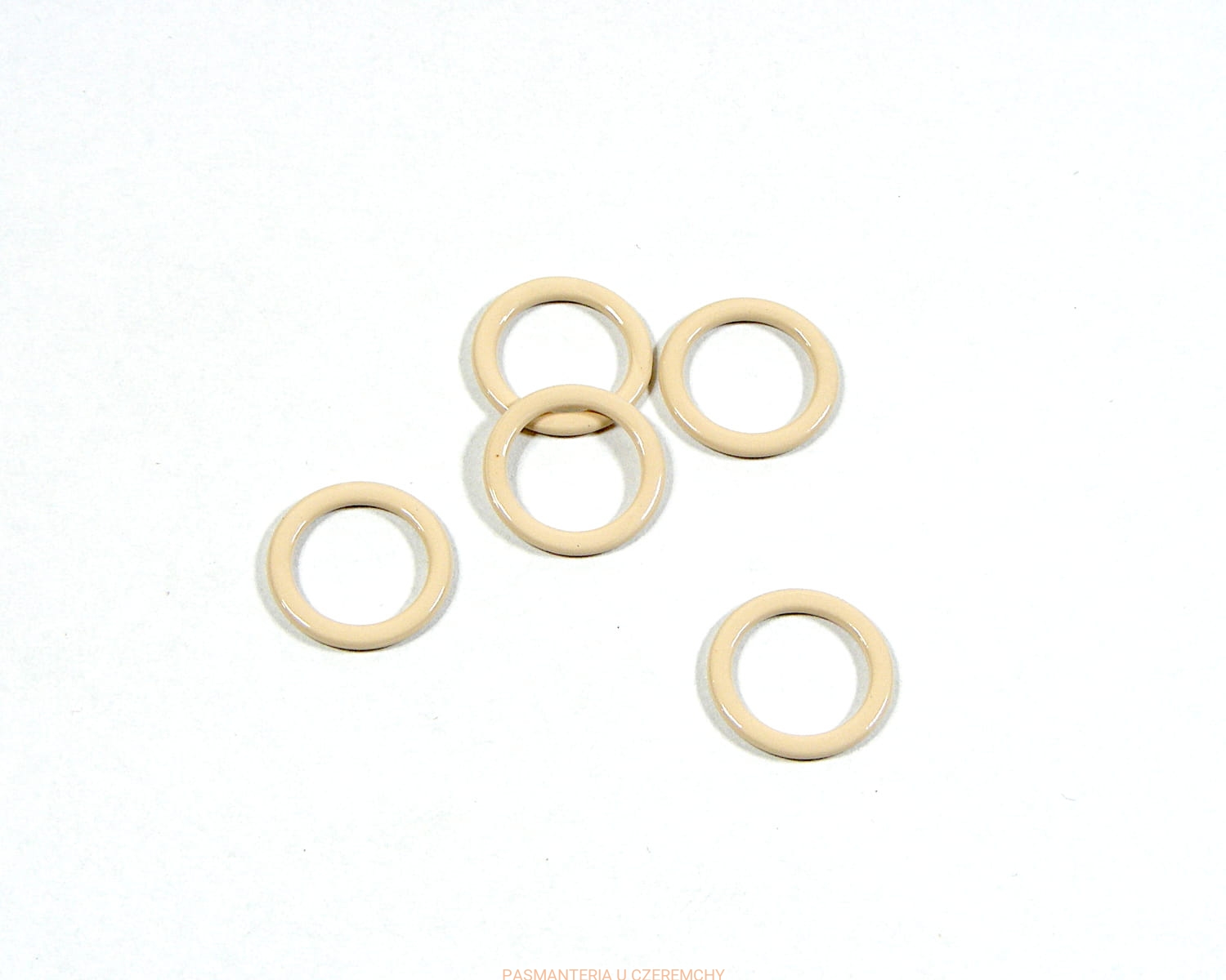 Metalowe, lakierowane kółko bieliźniarskie beżowe, cieliste. Średnica wewnętrzna - ok. 10,5 mm, zewnętrzna - ok. 14 mm.