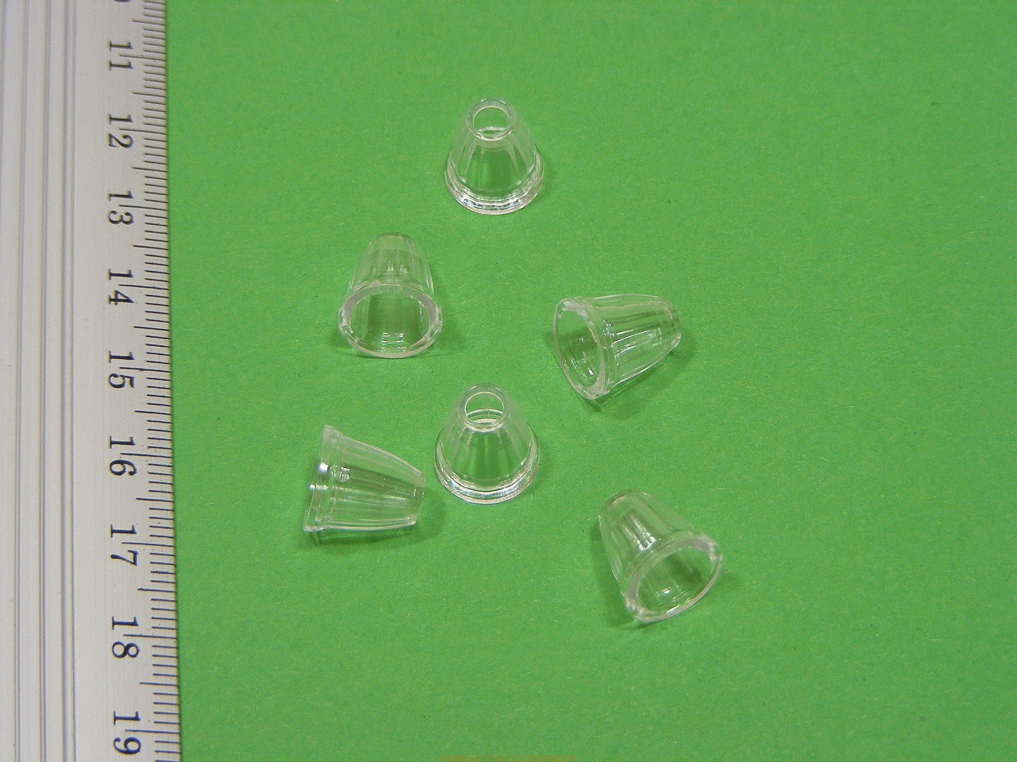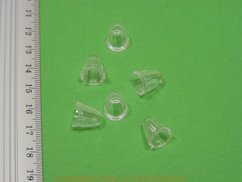 Plastikowe końcówki do zakładania na supełki na końcach sznurka i zabezpieczania ich w ten sposób przed rozwlekaniem, a ponadto poprawiające wygląd odzieży i akcesoriów, w których sznurek jest stosowany. Wysokość - ok. 1,1 cm, szerokość maksymalna - ok. 1,1 cm. Średnica otworu na sznurek - ok. 3,5 mm.