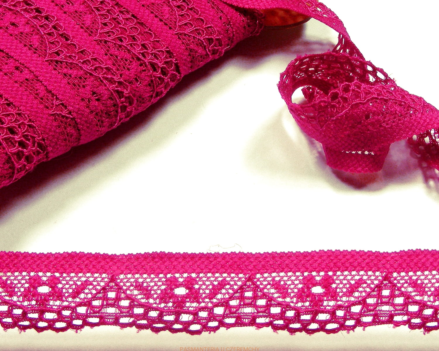 Elastyczna, rozciągliwa koronka w malinowym odcieniu różu, szerokości 15 mm.