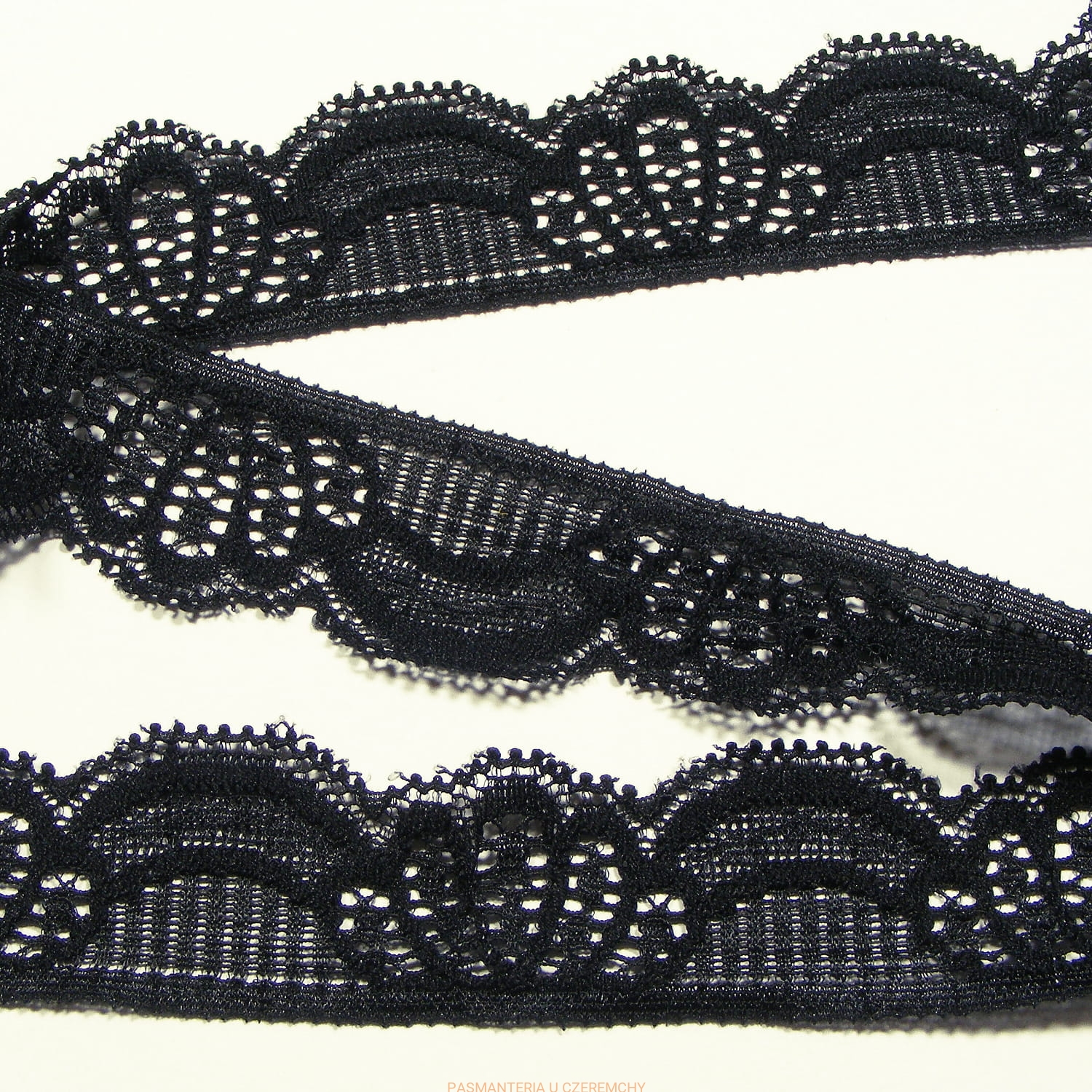 Elastyczna, rozciągliwa koronka szerokości 30 mm, czarna.