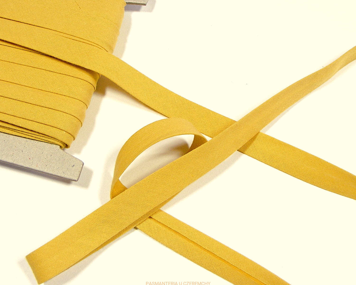 Lamówka bawełniana ze skosu, szerokość 12 mm, w ciepłym, miodowym odcieniu beżu.