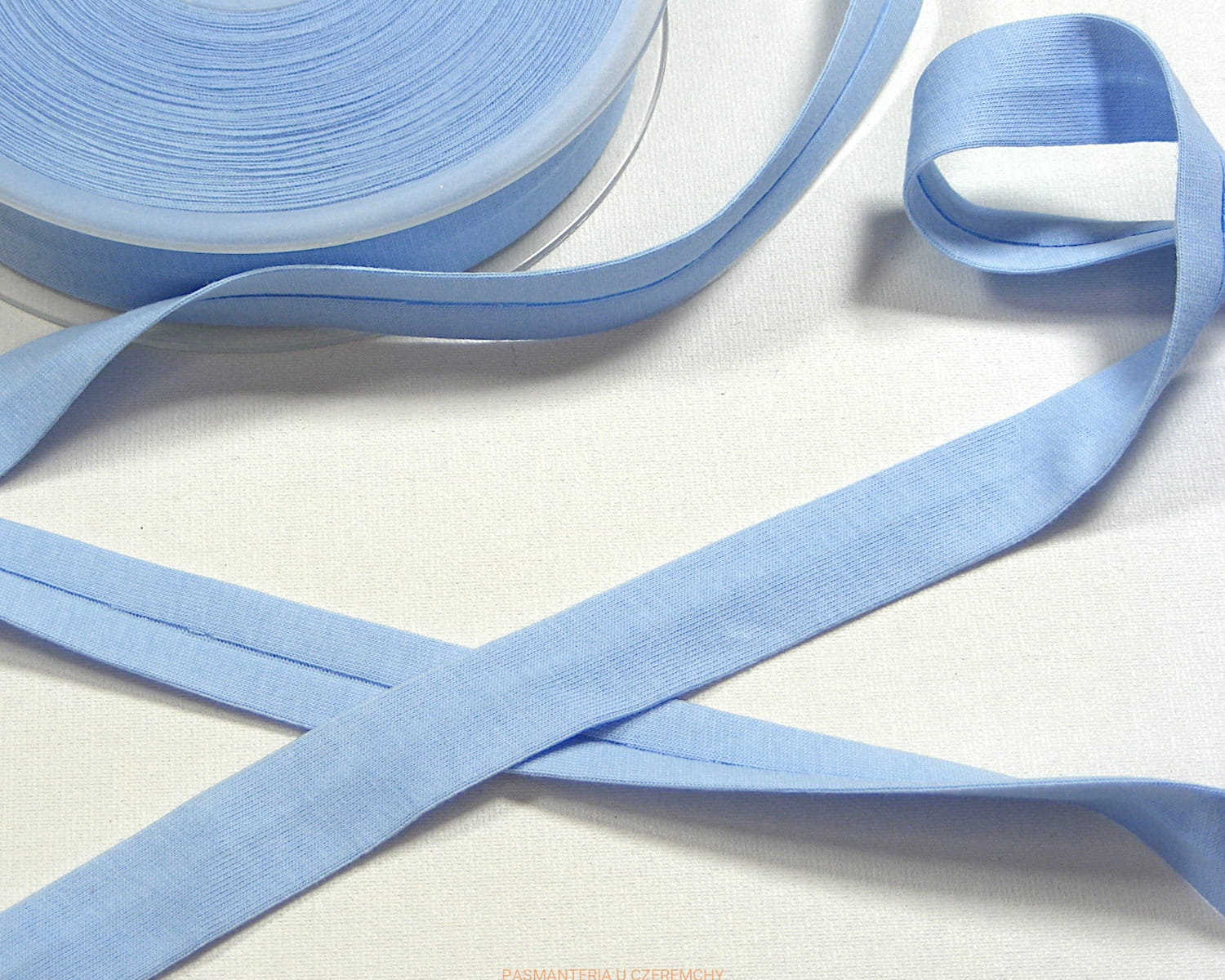 lamówka 18 mm niebieska z jerseyu bawełnianego - zaprasowana /dzianinowa, jerseyowa/