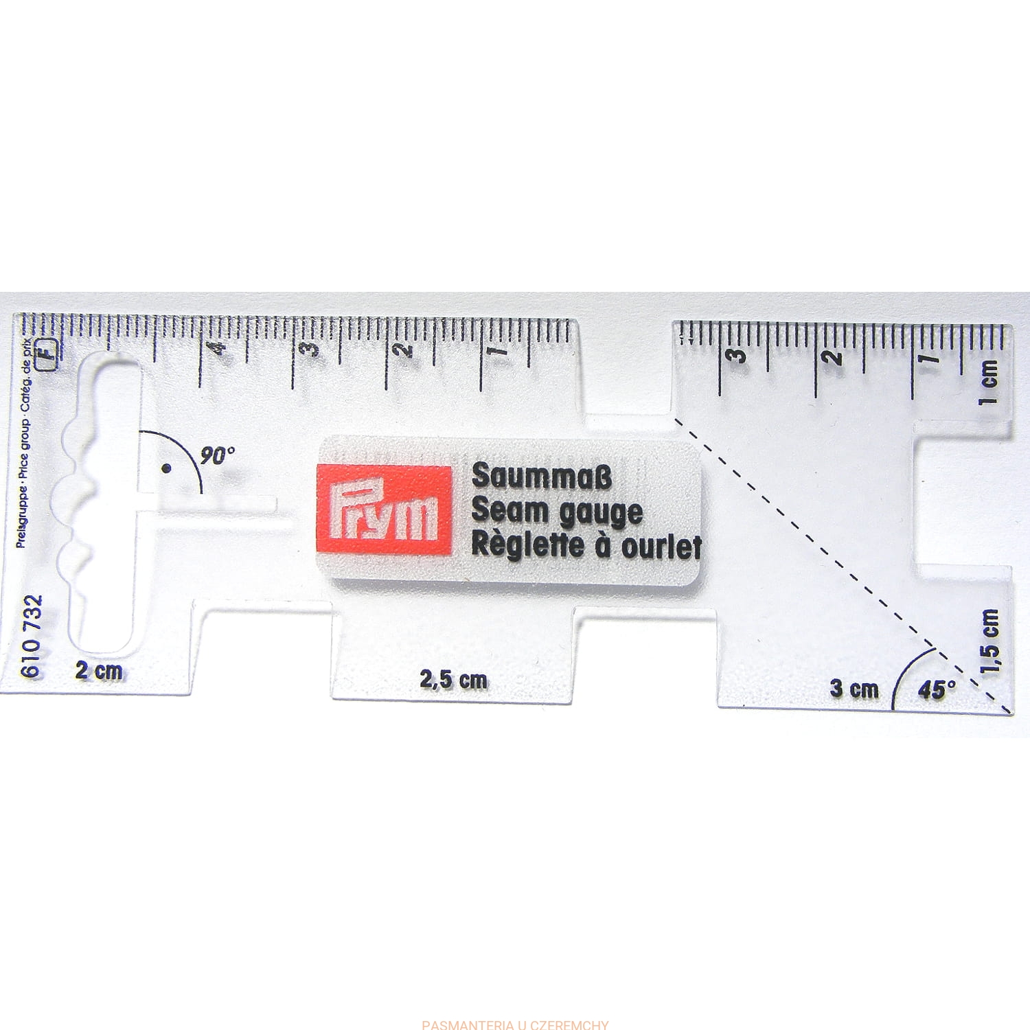 Mini linijka - miarka krawiecka PRYM 610 732. Wykonana z giętkiego plastiku, przejrzysta.