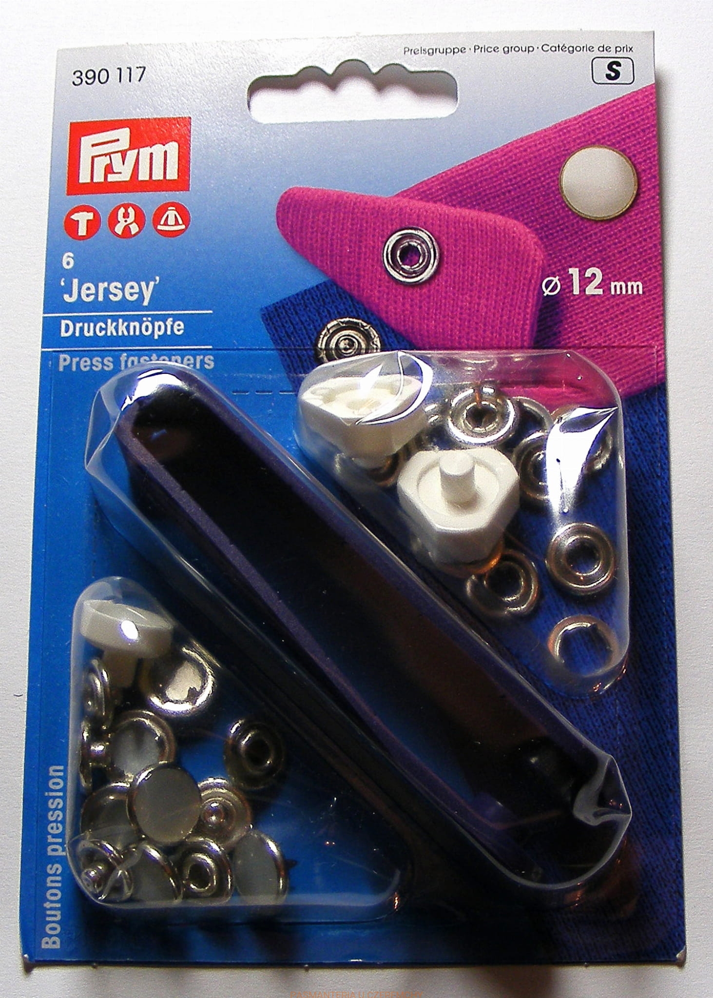 Zestaw zawiera 6 kompletów zatrzasków, które można nabijać młotkiem lub przy użyciu napownicy PRYM 390 900, 390 901, trójnoga 373 130 i napownicy Koh-I-Noor. W zestawie znajduje się przyrząd ułatwiający ich nabijanie oraz końcówki do napownicy.