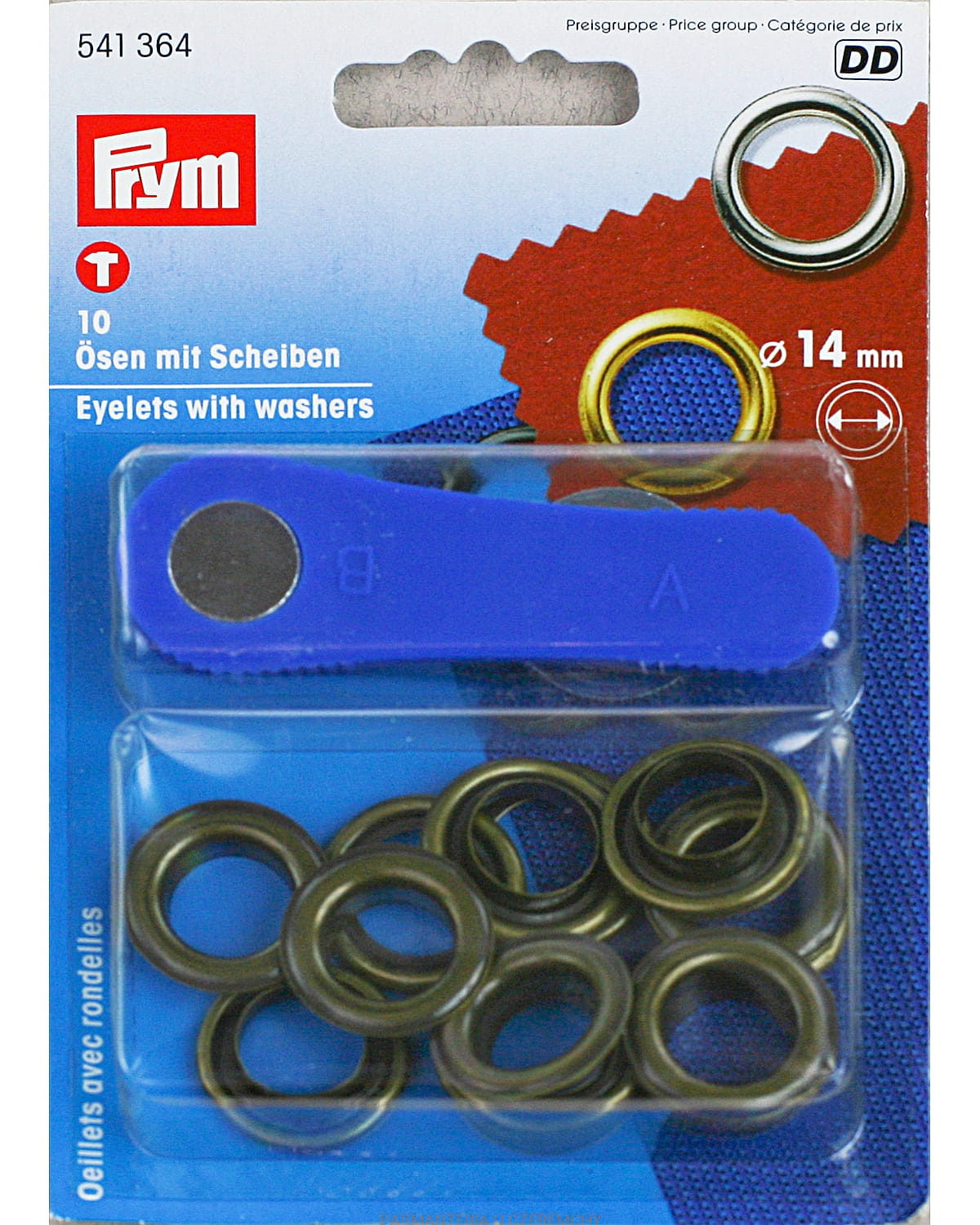 Oczka /nity oczkowe/ PRYM 541 364 w kolorze oksydowanego mosiądzu, nierdzewne. Średnica wewnętrzna oczka - 14 mm.