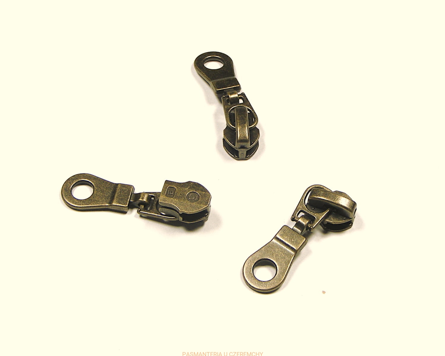 suwak zamkowy do zamków spiralnych rozm. 5 - mosiądz oksydowany /spirala/