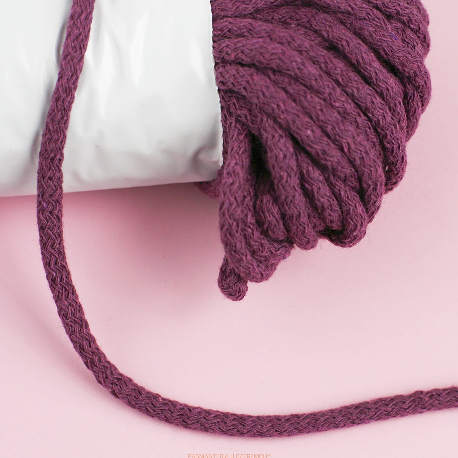 sznurek odzieżowy bawełniany 5 mm ciemnowrzosowy - motek 20 mb /fioletowy, wrzosowy/