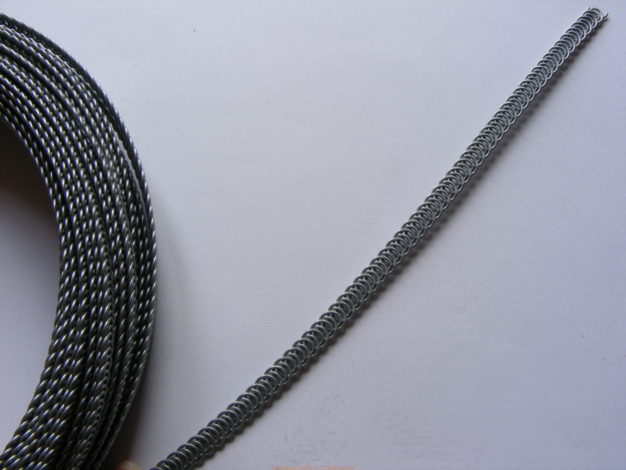 Taśma spiralna metalowa, szerokości 5 mm, do samodzielnego docinania i wykonywania fiszbinów gorseciarskich o potrzebnej długości. Rolka 25 m.