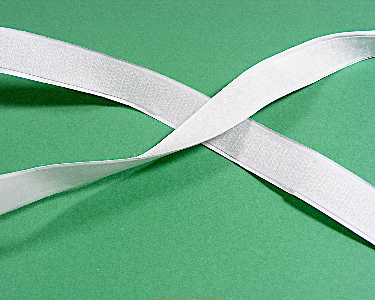 Taśma rzepowa samoprzylepna szer. 20 mm, biała. Kompletna - taśma z haczykami i taśma z pętelkami.