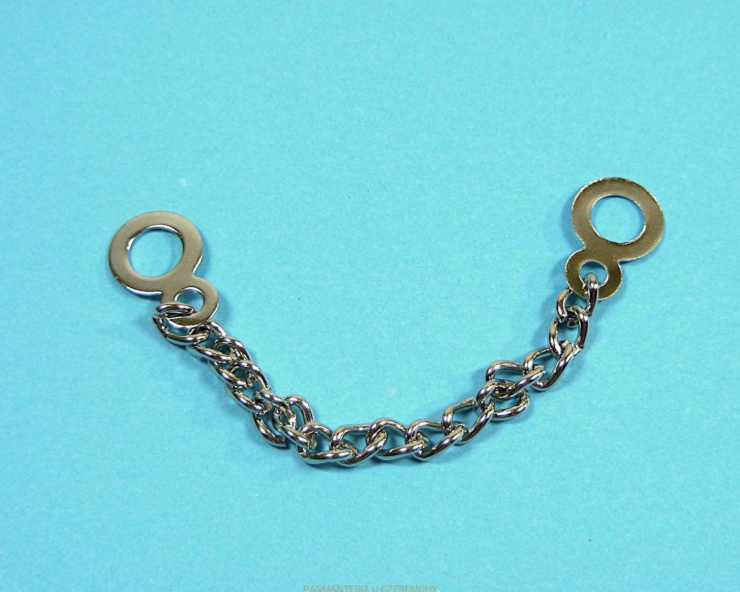 Metalowy wieszaczek ubraniowy - łańcuszek niklowany. Długość całości - ok. 9 cm.