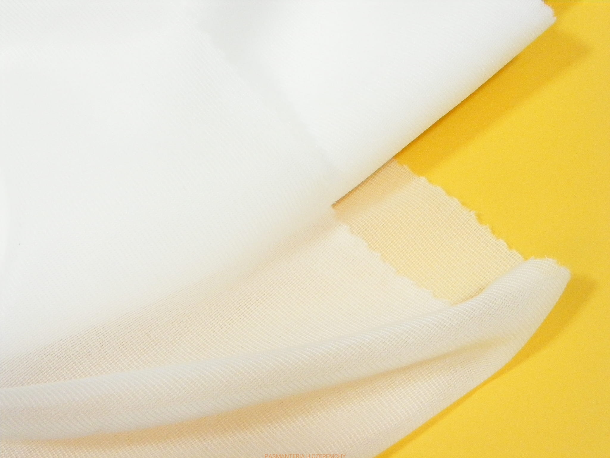 Lekki wkład elastyczny /sztywnik elastyczny, flizelina elastyczna/ dziany biały, z klejem, szer. 120 cm. Gramatura - 30 g/m2.