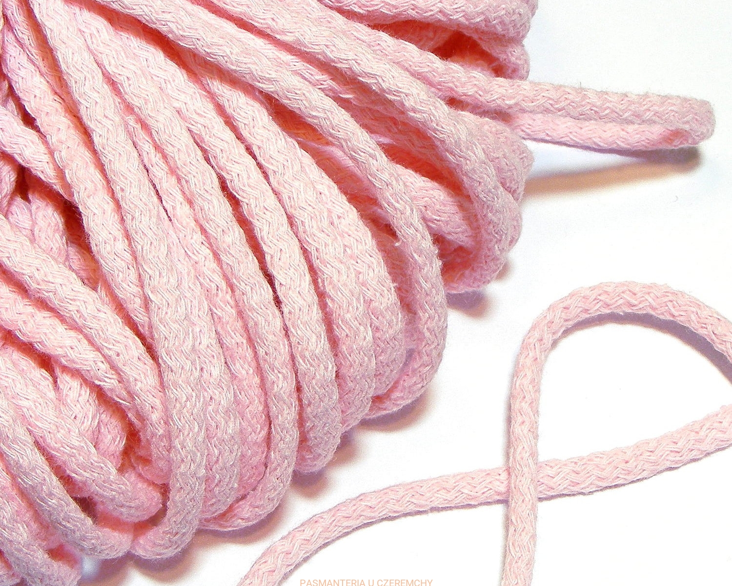wyprzedaż końcowa - 7,20 m - sznurek odzieżowy bawełniany 5 mm - pudrowy róż /jasnoróżowy, różowy/