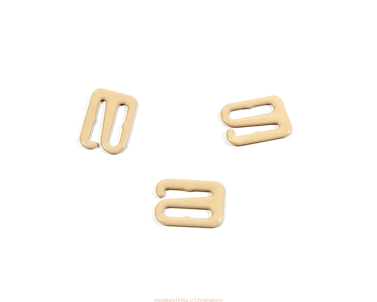 Metalowy zaczep do ramiączek, lakierowany, w kolorze beżowym, cielistym. Szerokość przelotki - 11 mm.