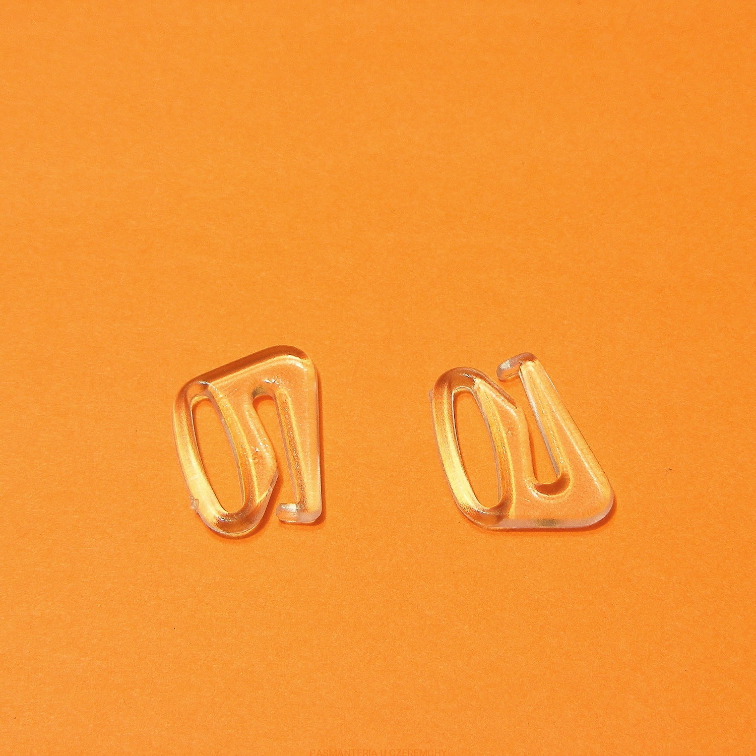 Plastikowy zaczep do ramiączek, Bezbarwny. Szerokość przelotki - 12 mm. Opakowanie 20 sztuk.