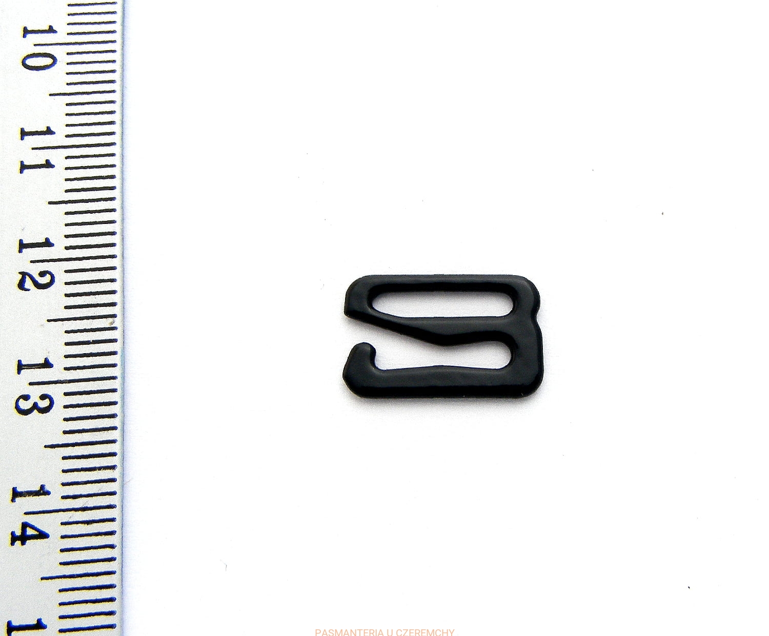 Metalowy zaczep do ramiączek, lakierowany, w kolorze czarnym. Szerokość przelotki - 12 mm.