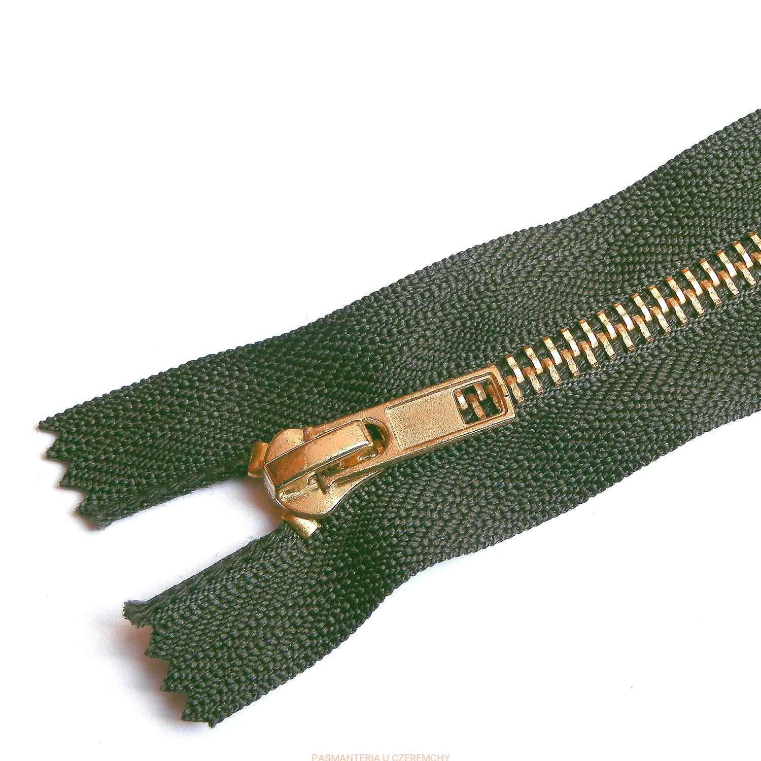 Zamek metalowy VT10 mosiądz /złoty/, dł. 15 cm. Szerokość zapiętej taśmy z ząbkami - ok. 6 mm.