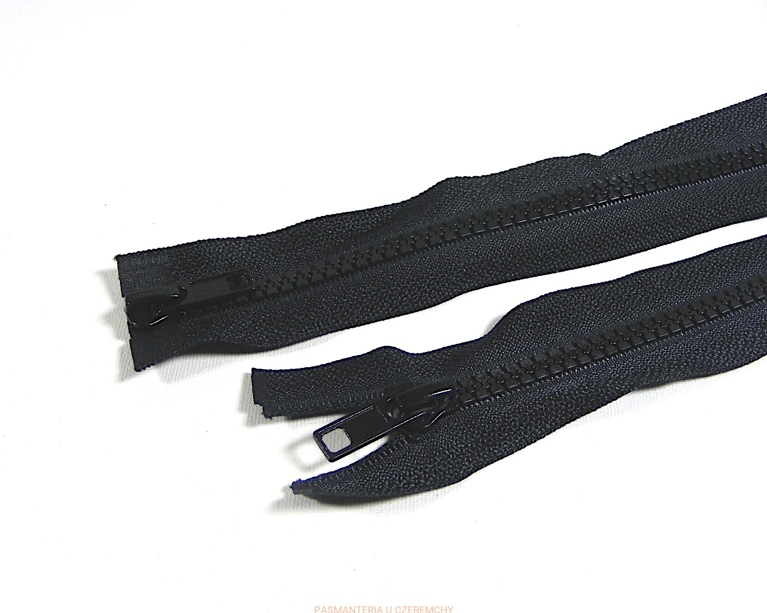 Zamek rozdzielczy dwusuwakowy typu kostka 140 cm, czarny.