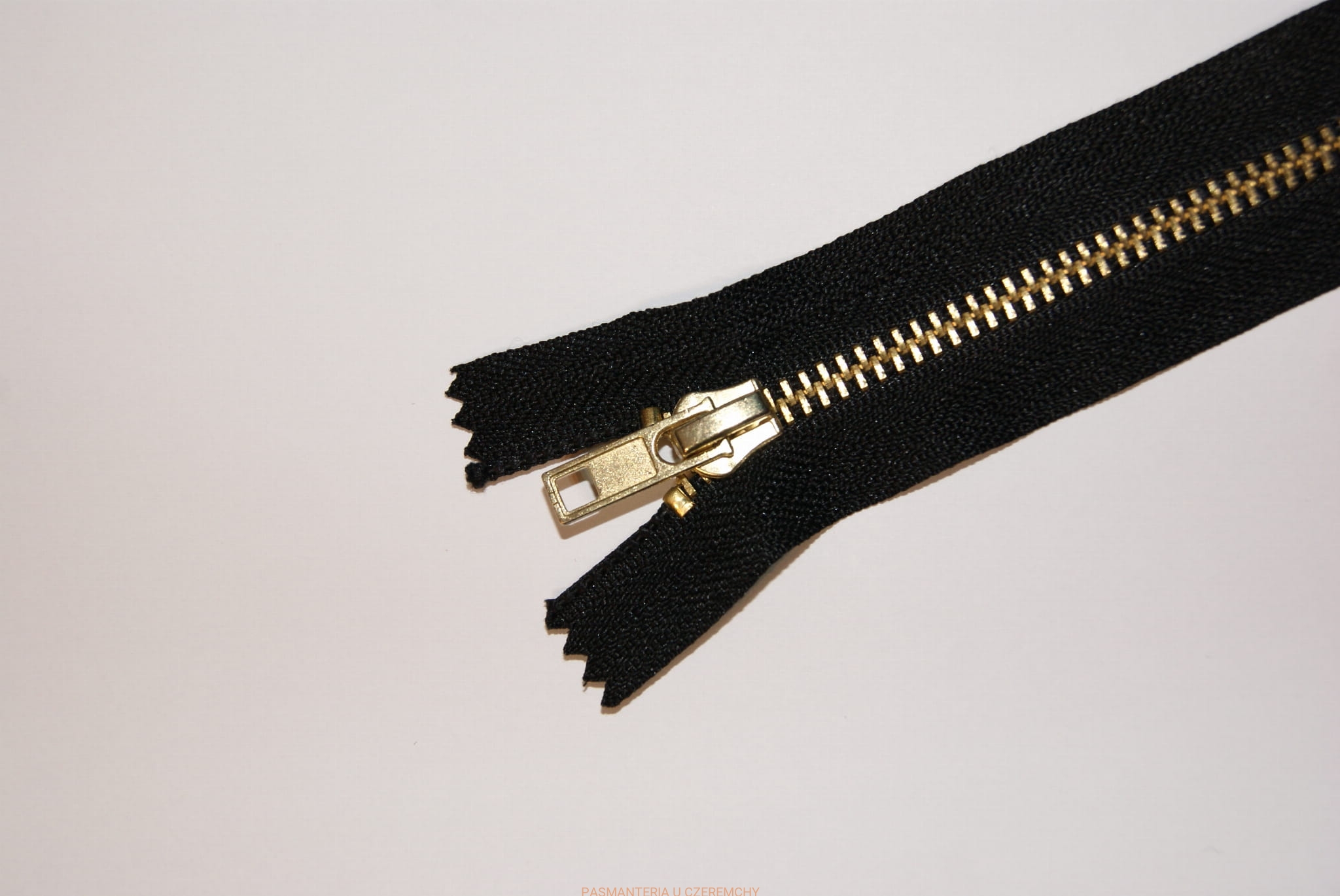 Zamek metalowy /kolor ząbków złoty/, dł. 16 cm. Szerokość zapiętej taśmy z ząbkami - ok. 6 mm.