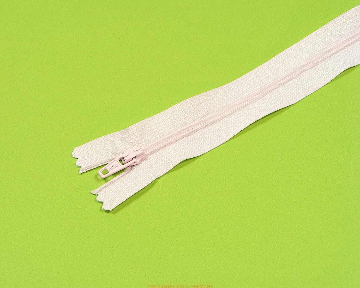 Zamek nierozdzielczy drobna spirala 18 cm jasnoróżowy,nadający się do spódnic, spodni i innych wyrobów z materiałów lekkich oraz średniej grubości.