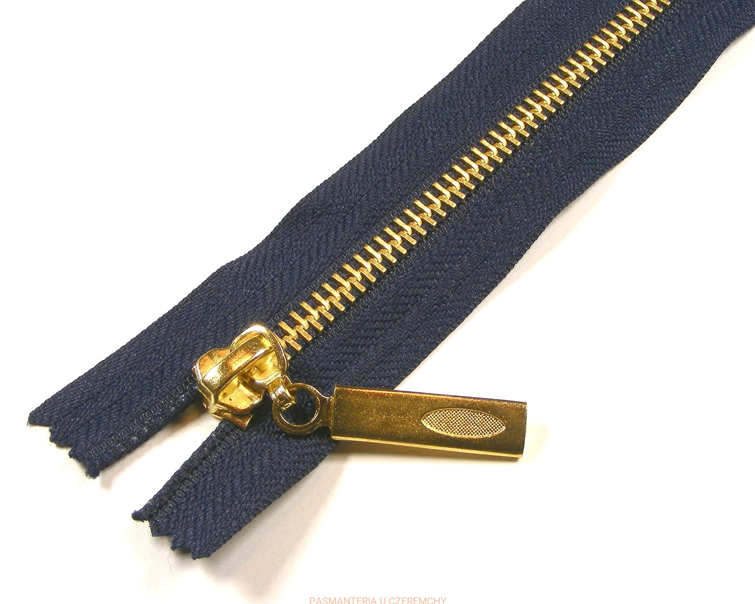 Zamek nierozdzielczy metalowy /kolor ząbków - mosiądz, złoty/, granatowy /klik/, dł. 35 cm.