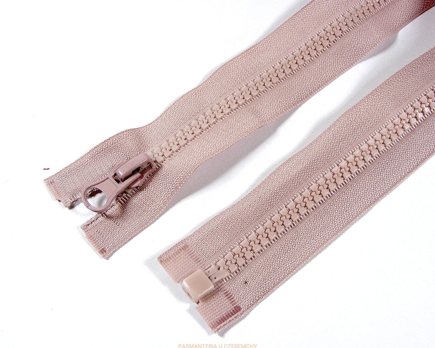Zamek rozdzielczy typu kostka rozm.5, dł. 40 cm, w pastelowym odcieniu złamanego odcienia różu, wpadającym w beżowy.