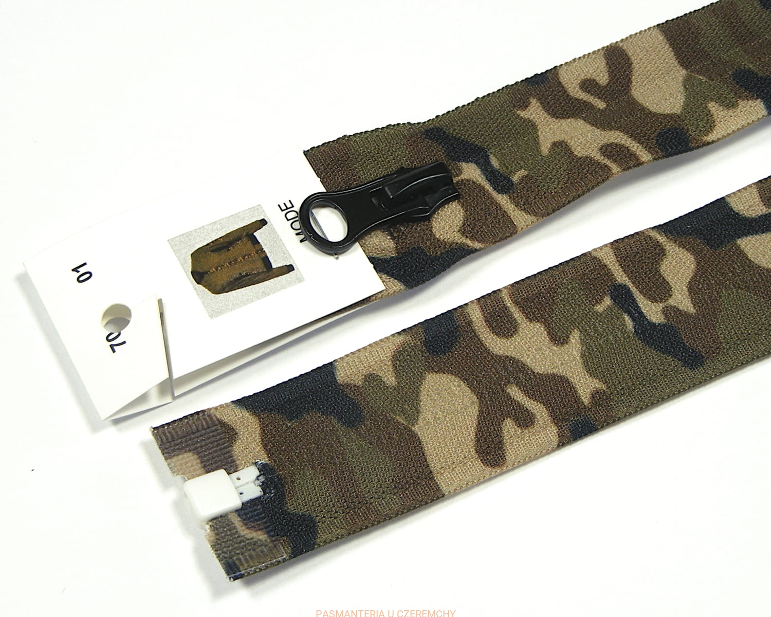 Zamek rozdzielczy plastikowy spirala 5 dł. 50 cm z nadrukiem we wzór moro.