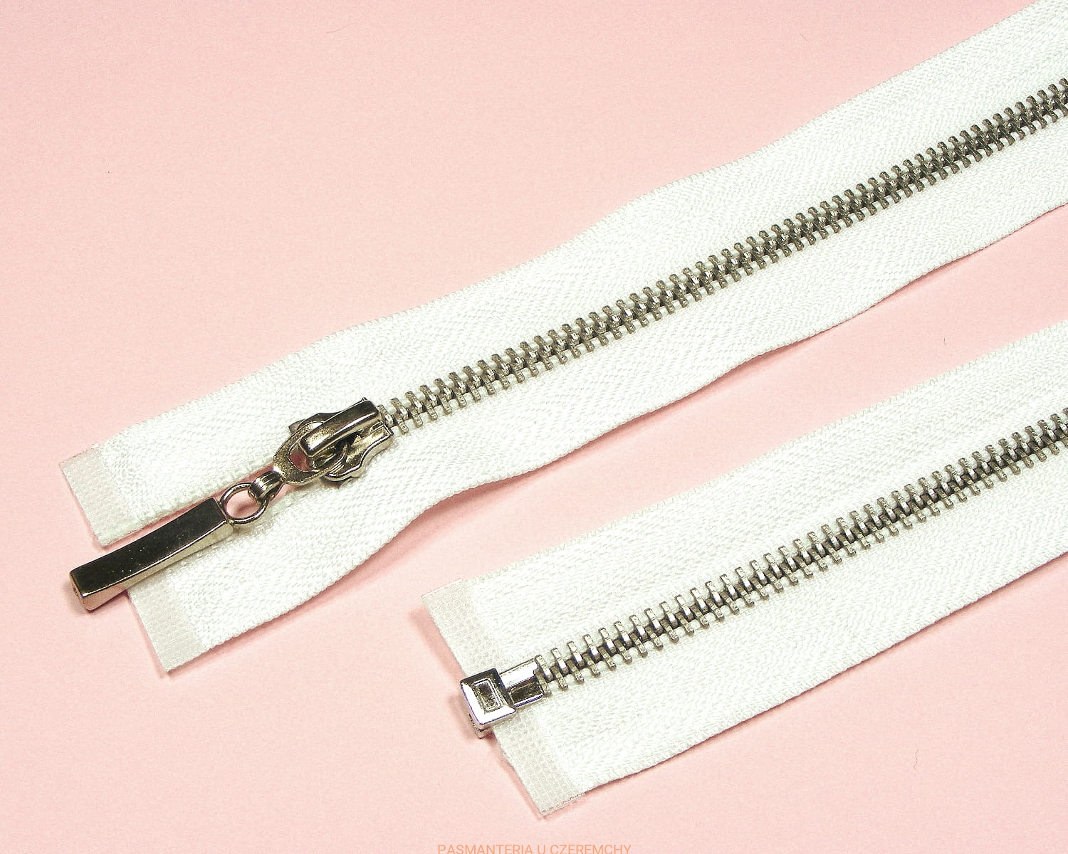 Zamek rozdzielczy metalowy VT10, kolor ząbków - nikiel, dł. 55 cm, biały.