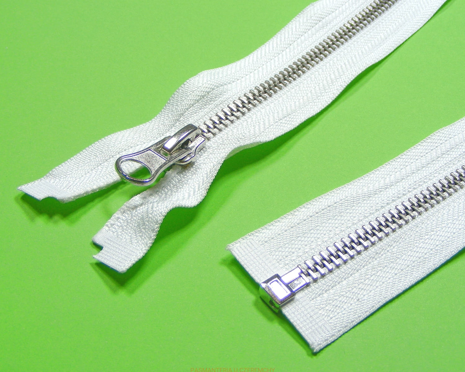 Zamek rozdzielczy metalowy VT10, kolor ząbków - nikiel, dł. 55 cm, biały.