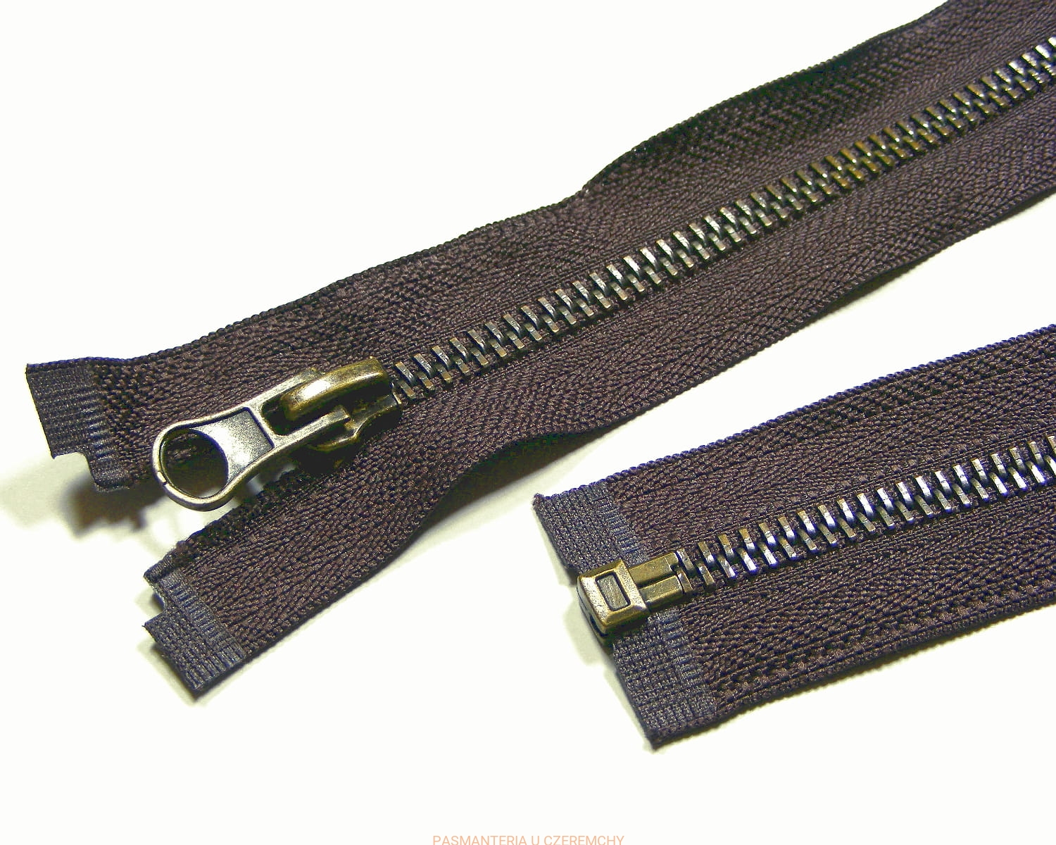 Zamek rozdzielczy metalowy VT10, kolor ząbków - mosiądz oksydowany, dł. 70 cm. Kolor brązowy /klik/.