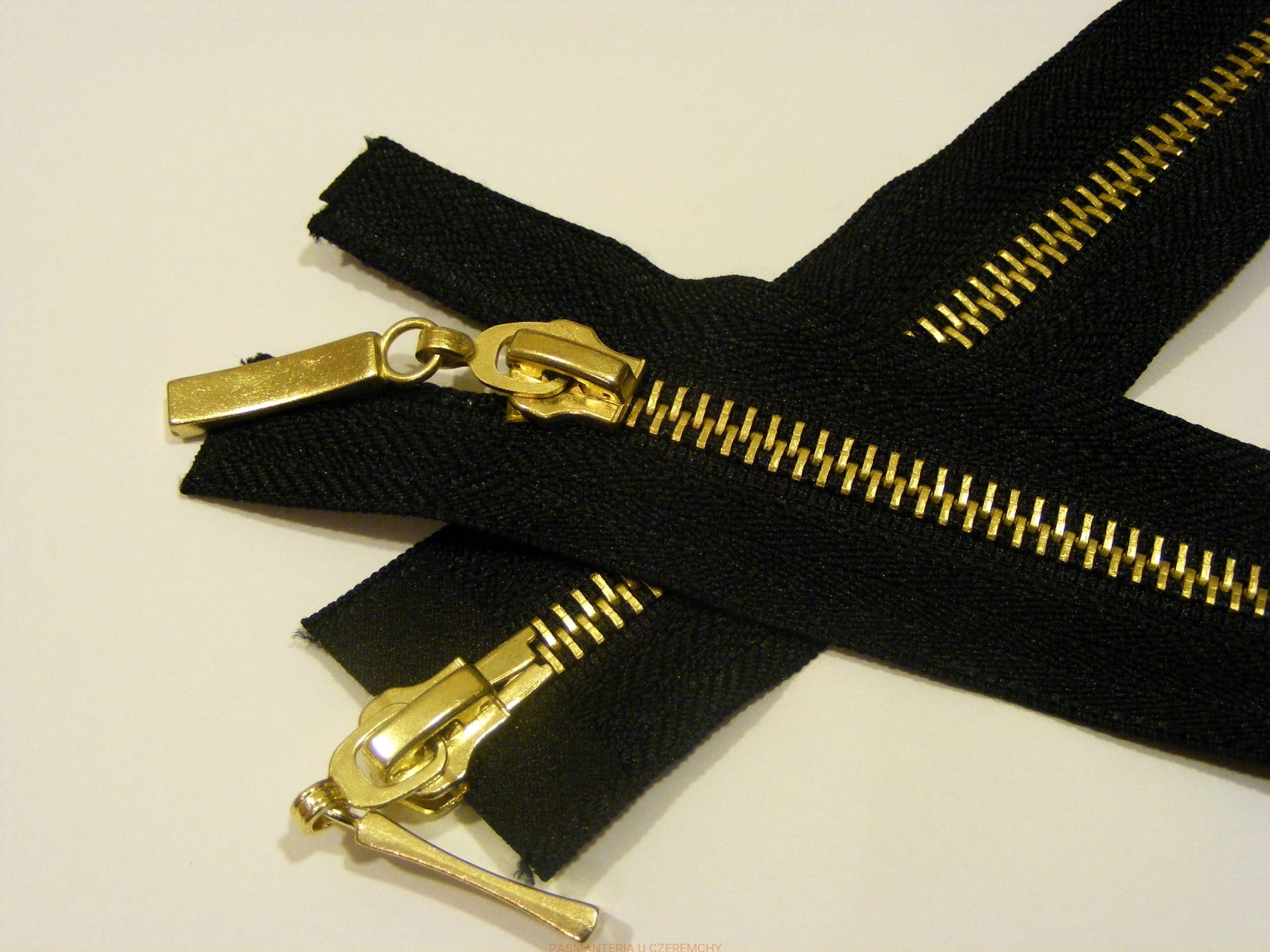 Zamek rozdzielczy dwusuwakowy metalowy /kolor złoty/ 80 cm czarny.