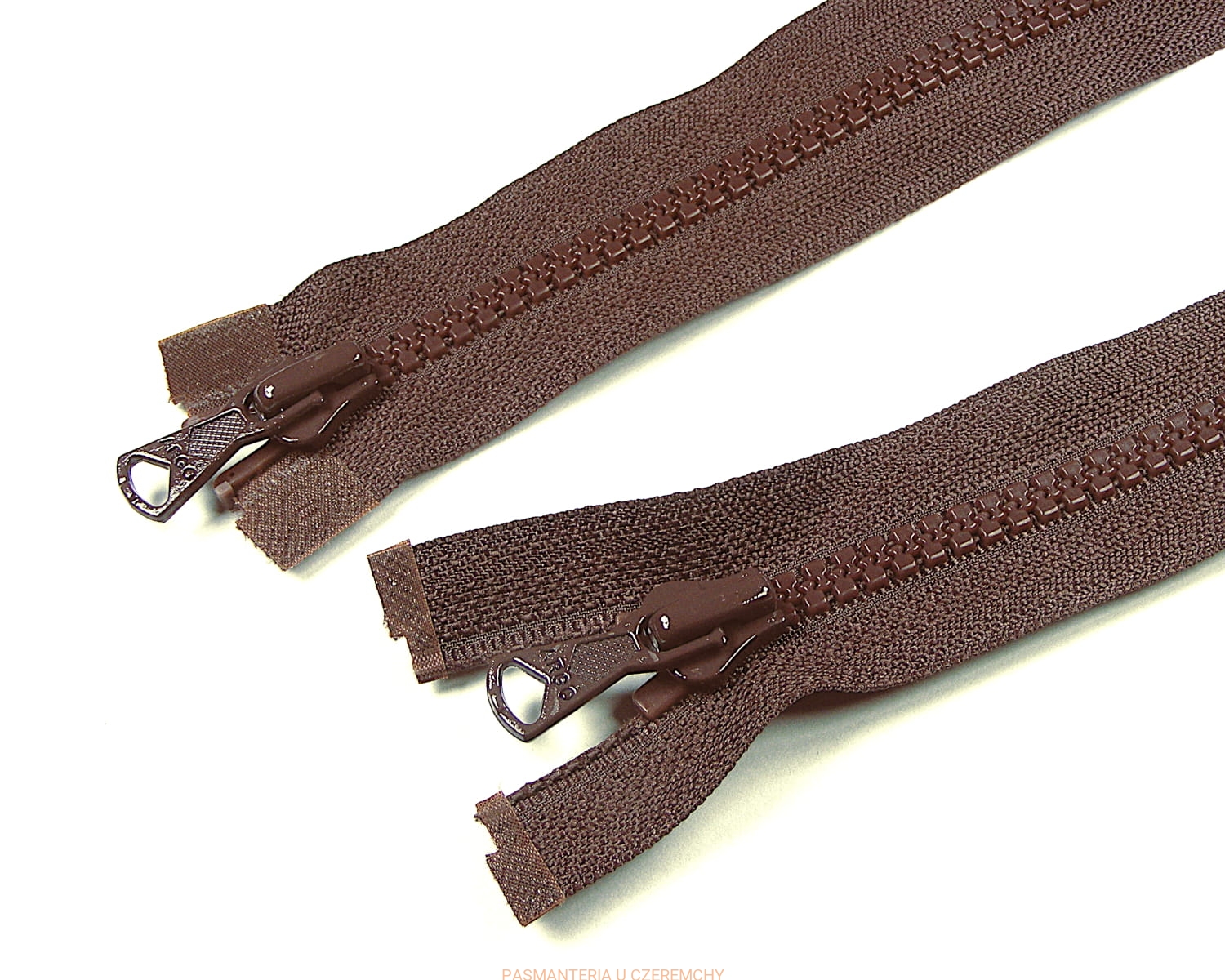 Zamek rozdzielczy dwusuwakowy kostka 90 cm ciemnobrązowy /klik/. Szerokość ząbków po zapięciu zamka - ok. 6 mm.