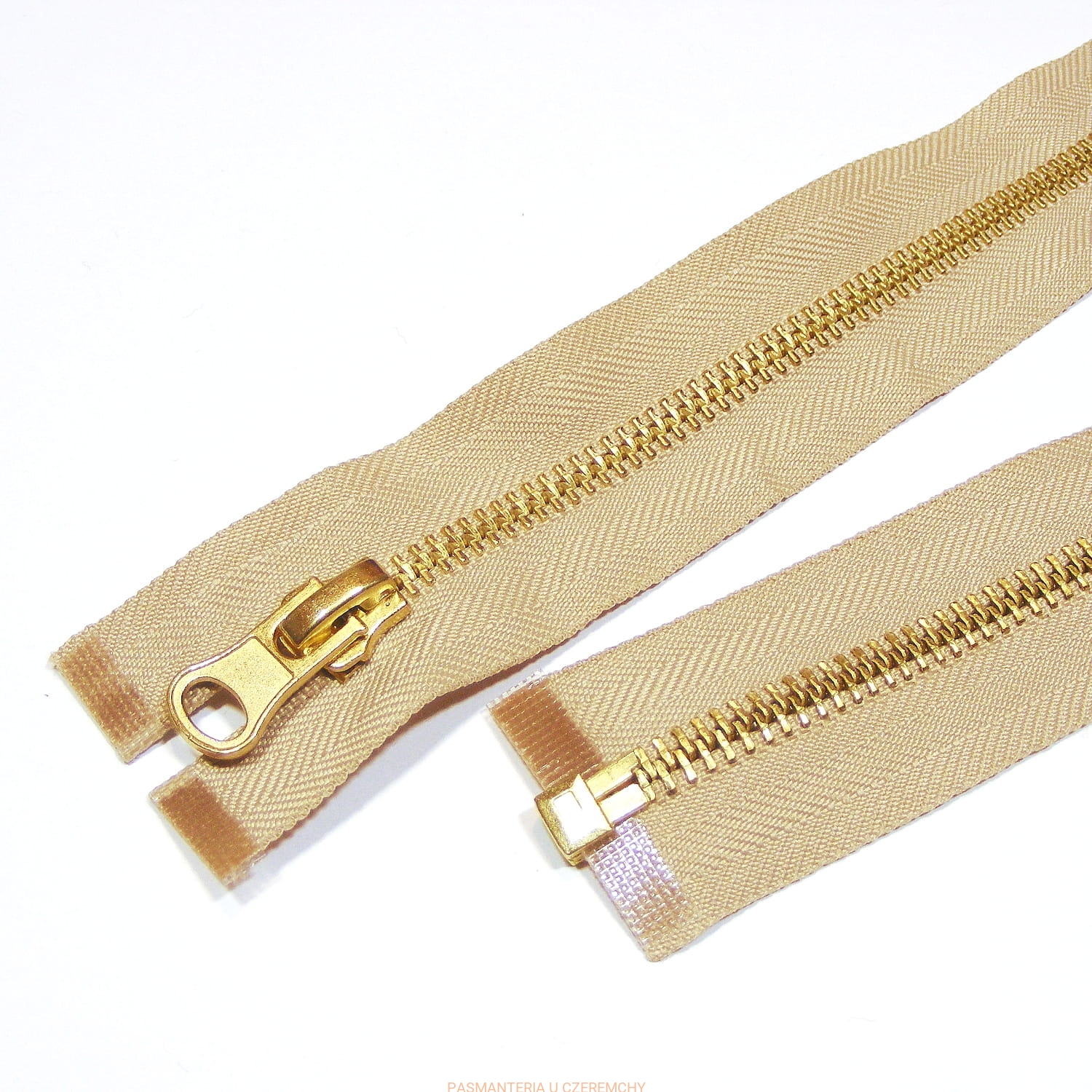 Zamek rozdzielczy metalowy /kolor ząbków - złoty/, beżowy, dł. 95 cm.