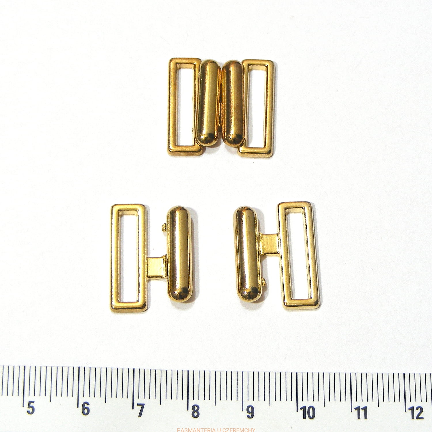 zapięcie metalowe 18 mm - kolor złoty, bezniklowe /do stroju, bieliźniarskie, biustonosza, klamerka, klamra/