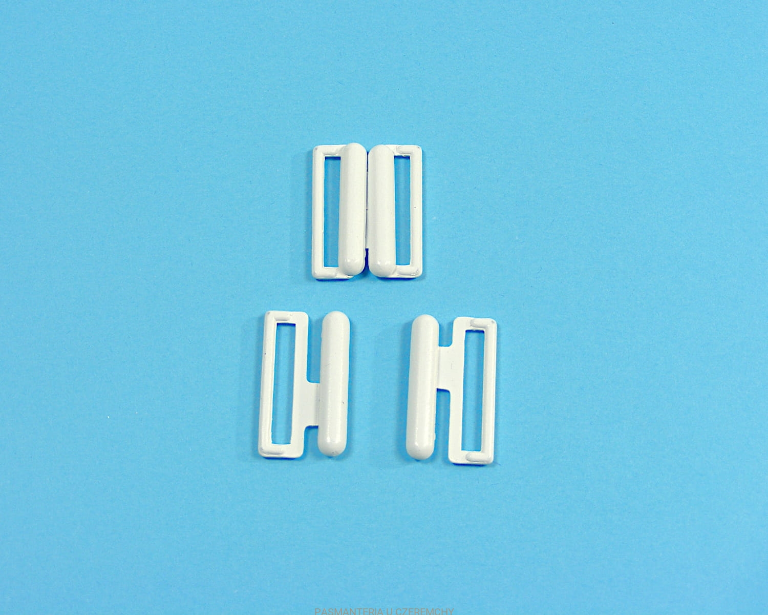 zapięcie metalowe 20 mm - białe /klamerka, klamra, do biustonosza, stroju, bieliźniarskie/