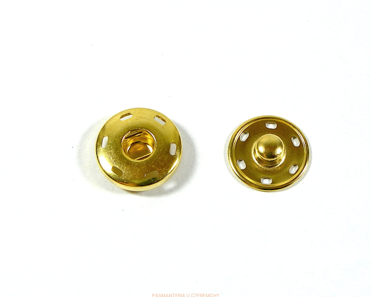 Zatrzaski metalowe do naszywania, nierdzewne, średnicy 19 mm. Kolor złoty.
